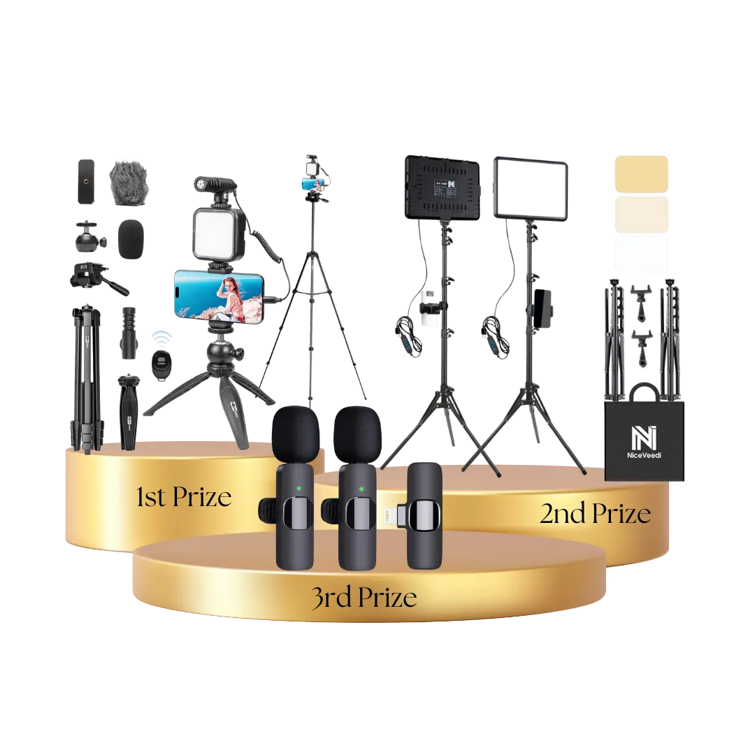 1st Prize - Full Vlog Kit 59" extendable tripod, Tricolor LED Light, Shotgun Microphone